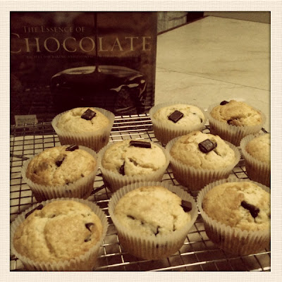 I don't make a lot of cupcakes or muffins, I however would like to admit that a compulsive muffin/cupcake liner buyer. Whenever I see new colors or designs of the liner even if I have no idea when I'm going to use them I always buy it! I even get obsessive with them whenever I see a cute design online, I check my local cookery store if we got those designs here. One of my New Year's Resolution is used up all the things that I have been hoarding like a crazed maniac. For this Chocolate Chunk Muffins, I used my clear plain ones to showcase the chunks that you could see through out the muffin. It a total coincidence that I chose this recipe by Joan Chang from a different book while at the same time started reading her new baking book Flour. How fun is that?