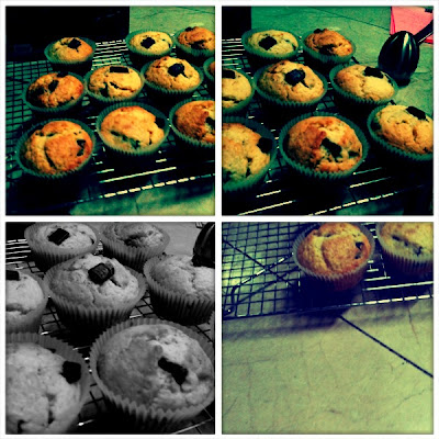 I don't make muffins often and I can still remember the first time I made muffins years ago, it was a huge disaster! I was afraid of over mixing which I heard creates a tough muffin. Silly little me, under mixed it and made a huge inedible mess! There were bits of flour not mixed in so when it baked . . . you can only guess the horror! LOL! After that horrible muffin incident I'm glad to say that I have made major improvement since then. I made my muffin making come back 3 years ago making this. I guess the saying "When there is a will, there's a way" Ha! It surely applies to me. My will to eat gives me the courage to try and try again. I actually wanted a chocolate chunk muffins but couldn't find a good recipe for it but since I love eating and making chocolate chunk cookies how bad can it be in muffin form. I'm glad to say they are not to shabby and the house smelled so wonderful after. The muffin itself is a vanilla based muffin with generous chunks of chocolate suspended in their crumbs. Its was such an easy afternoon baking project that I'm sure you will enjoy. My only gripe is the recipe said it yields 12 muffins? Uh..it barely fits 11 pieces. One less muffin to enjoy. LOL!